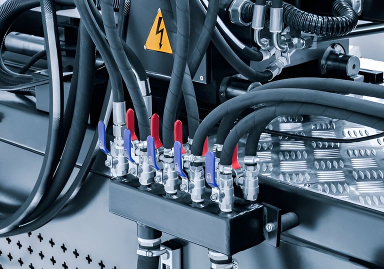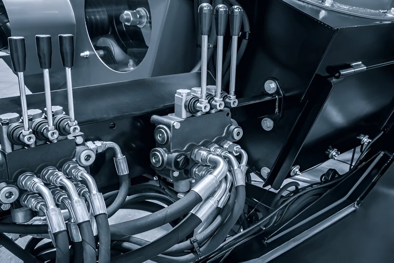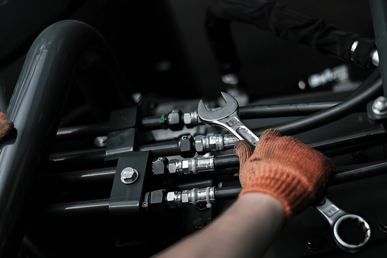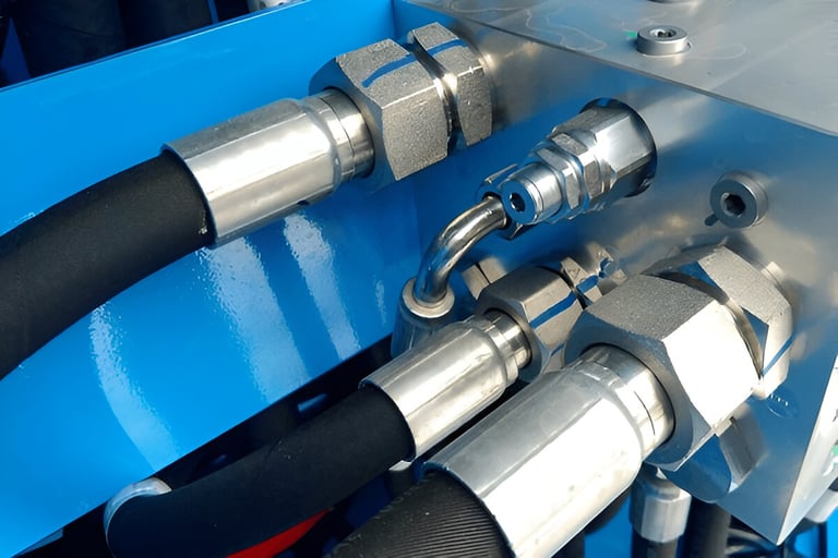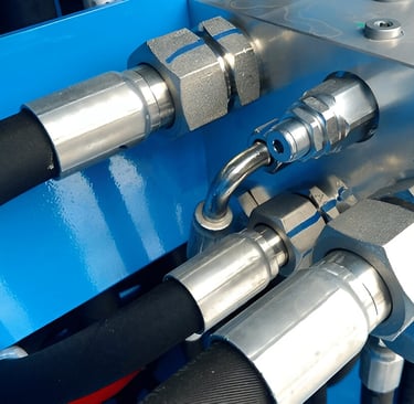 Professional installation of hydraulic components, including steel tubing and fittings, performed to exact specifications, ensuring structural integrity and reliability.